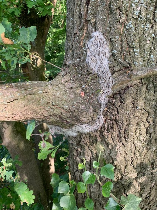 Der wärme- und trockenheitsliebende Eichenprozessionsspinner (EPS) ist seit einigen Jahren auf dem Vormarsch in Deutschland und entsprechend auch in Leichlingen präsent. Ab Anfang Mai muss man hier mit den gefährlichen Raupen rechnen. Die Tiere kommen an allen Eichenarten vor, besonders jedoch an der Deutschen Eiche. Einzelbäume und Bäume an Waldrändern werden bevorzugt befallen. Ihren Namen haben sie erhalten, weil sie sich nachts zum Fressen in die Baumkronen in einer langen Marschreihe bewegen, ähnlich einer Prozession.